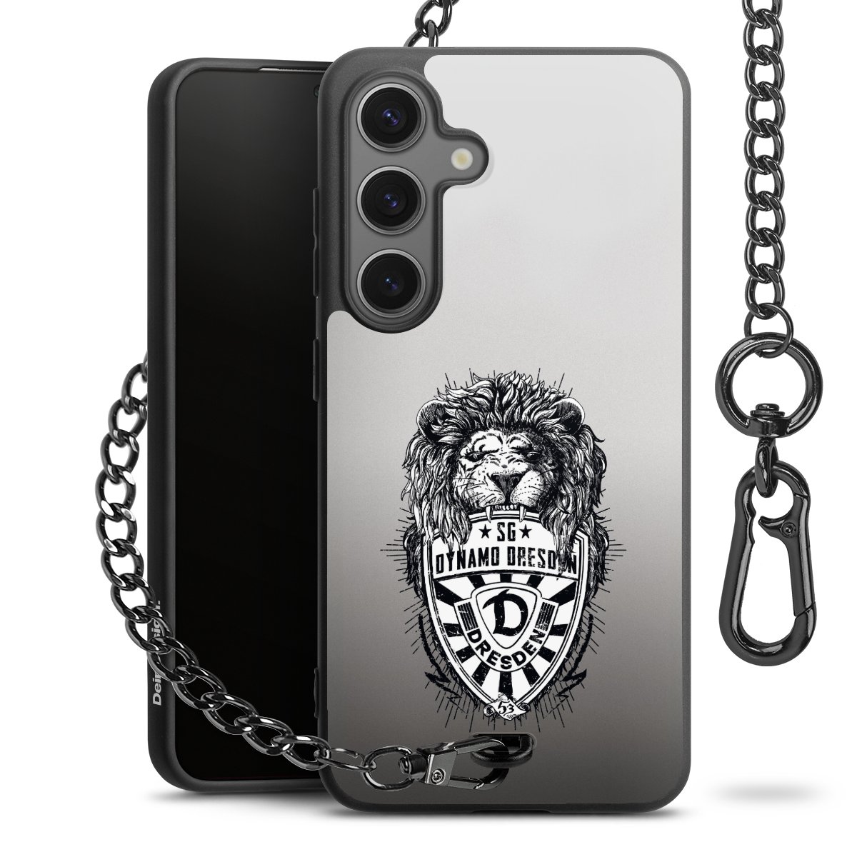Die mattschwarze Silikon-Handyhülle besteht aus robustem TPU (thermoplastisches Polyurethan). Sie ist flexibel und schützt Dein Smartphone vor Stößen und Kratzern. Die Kette sowie der Karabinerhaken sind aus Metall in Gunmetal-Optik gefertigt. Für dieses Produkt kommen ausschließlich TÜV-geprüfte Materialien zum Einsatz.
