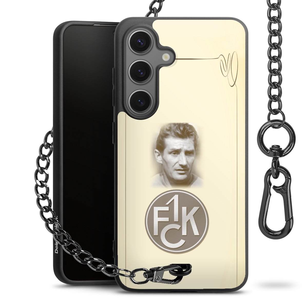 Die Handyhülle verfügt über eine mittig am unteren Rand platzierte Öse, an der die Metallkette stabil befestigt ist. Bestelle die Hülle einfach für Dein Smartphone-Modell, dann passt sie wie angegossen und Du brauchst sie bloß einmal anzudrücken. Handy in die Tasche, Karabiner an den Hosenbund – schon kann die Party starten.