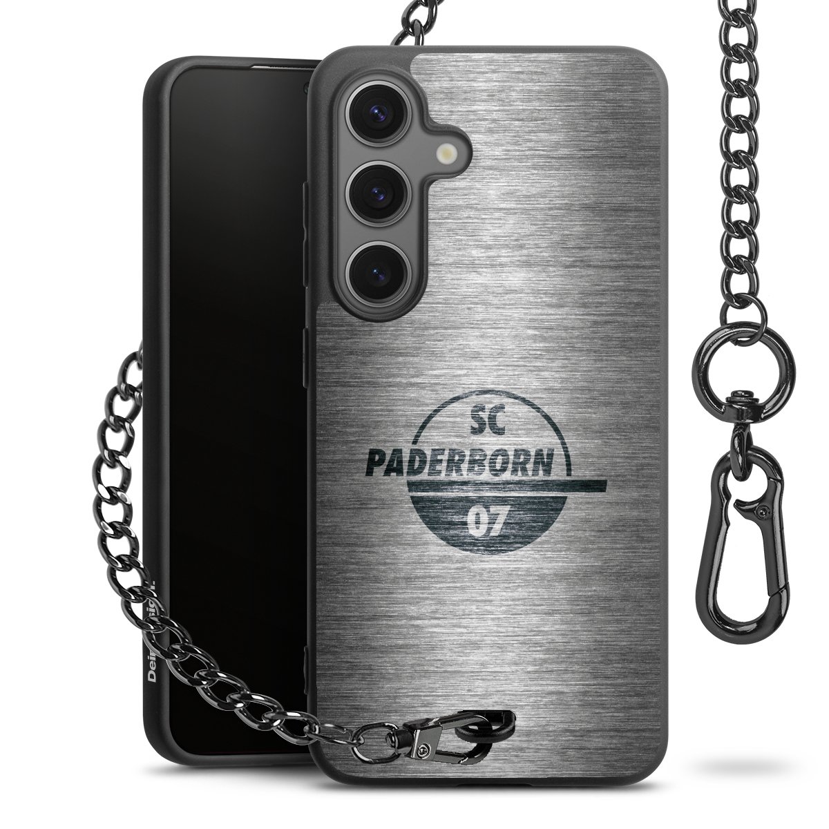 • Mattschwarze Handyhülle mit Metallkette