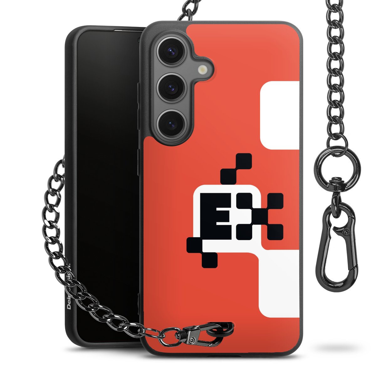- Mattschwarze Handyhülle mit Metallkette