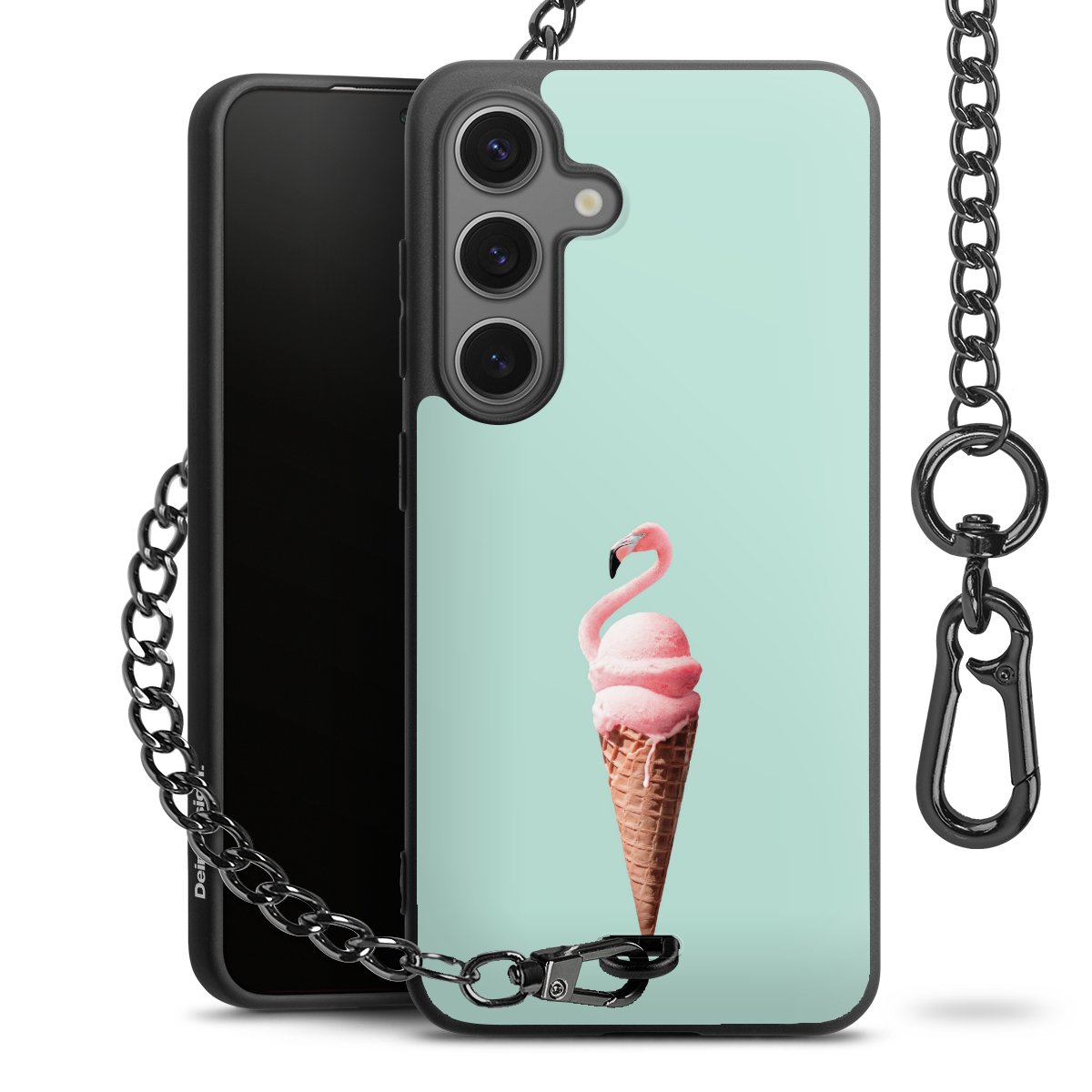 • Mattschwarze Handyhülle mit Metallkette