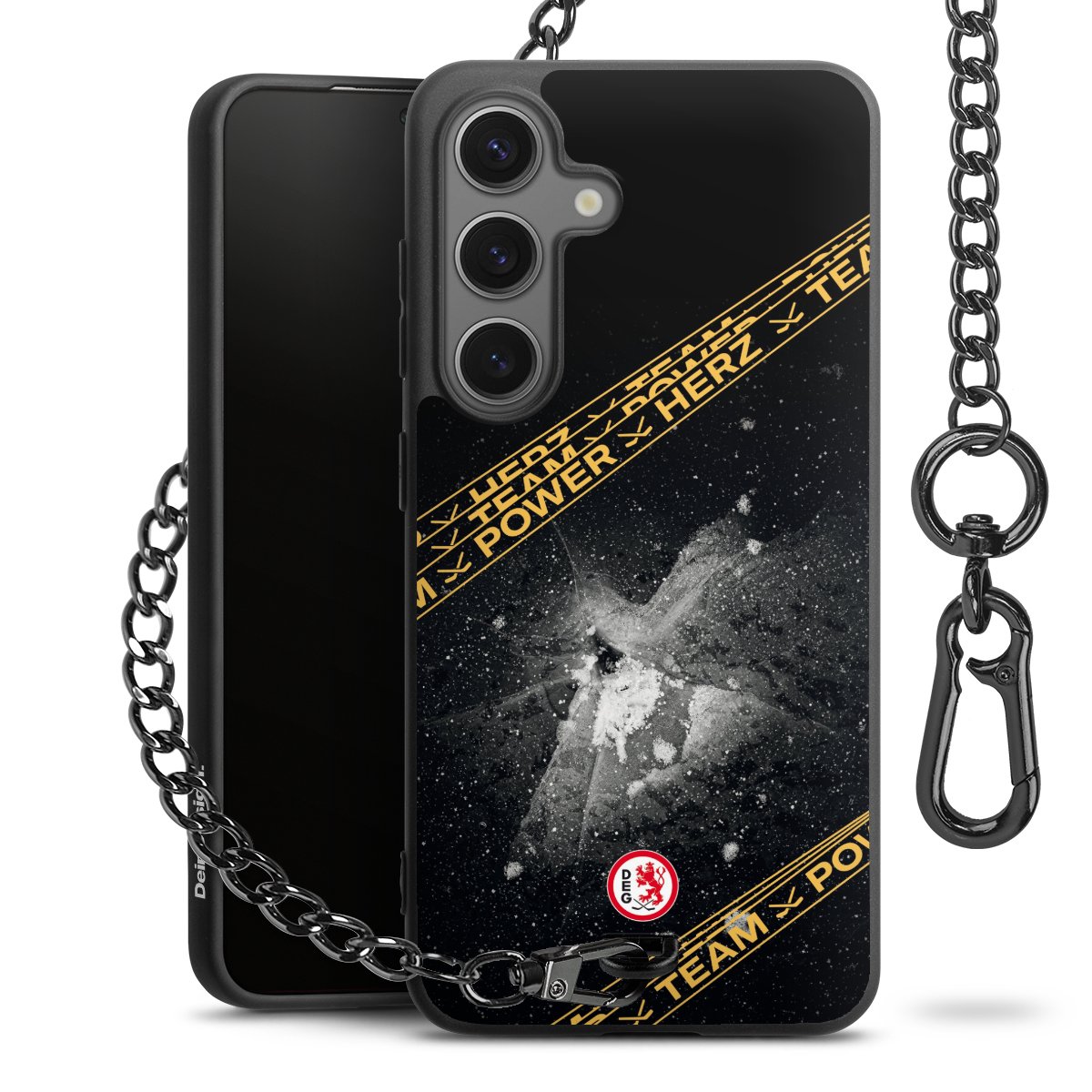 - Mattschwarze Handyhülle mit Metallkette