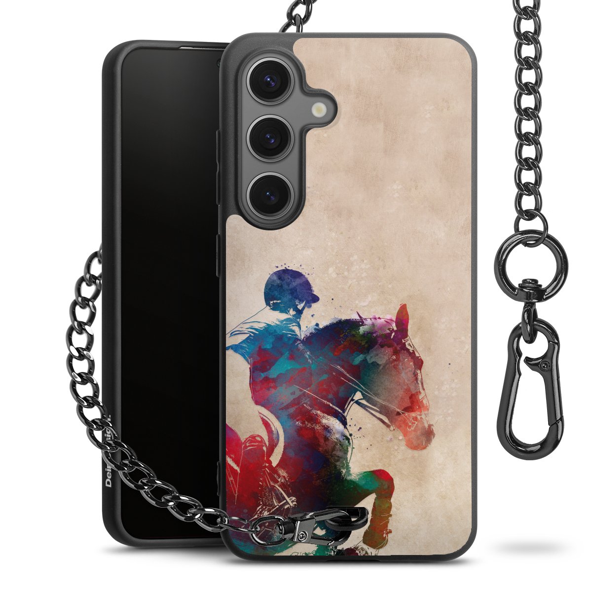 • Mattschwarze Handyhülle mit Metallkette