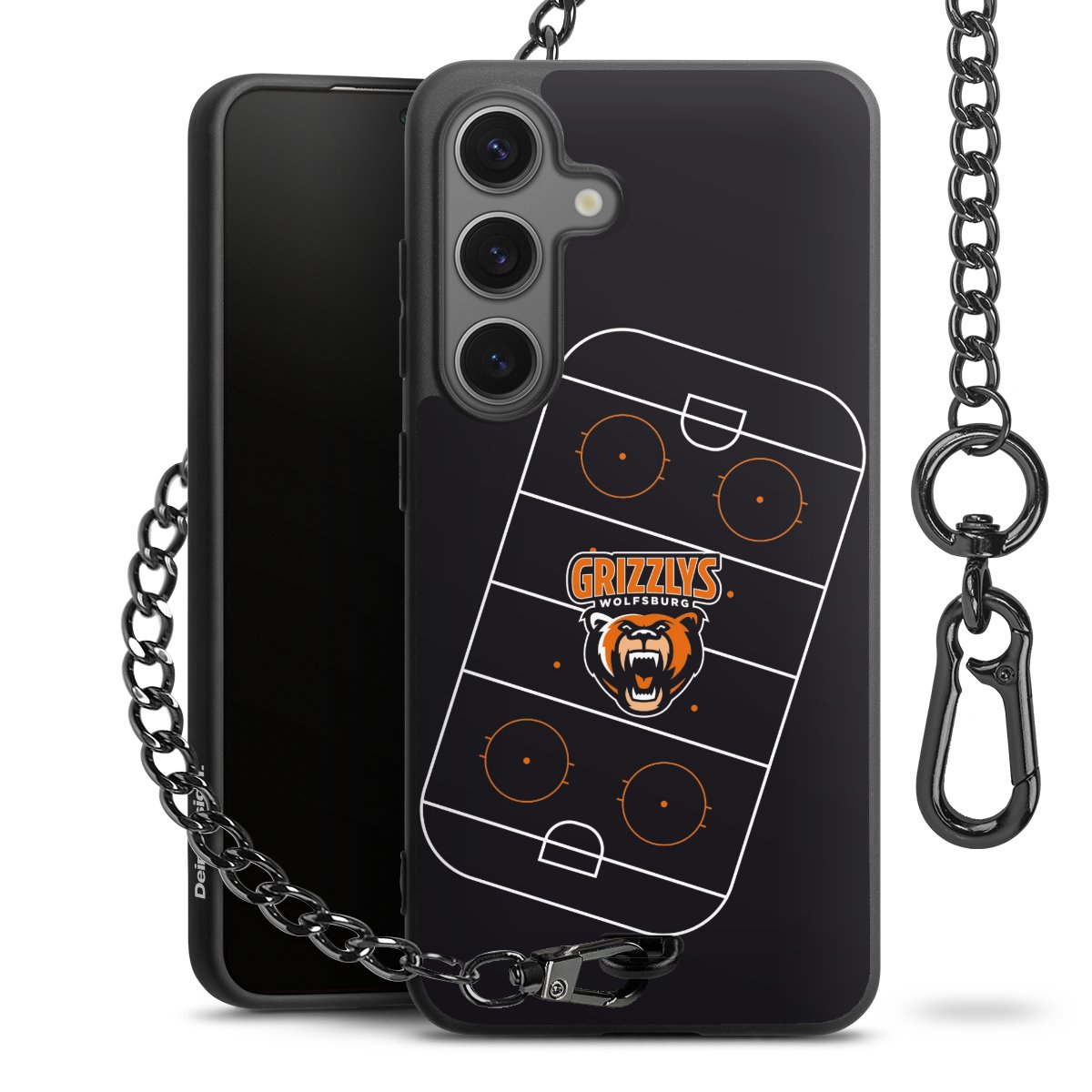 - Mattschwarze Handyhülle mit Metallkette