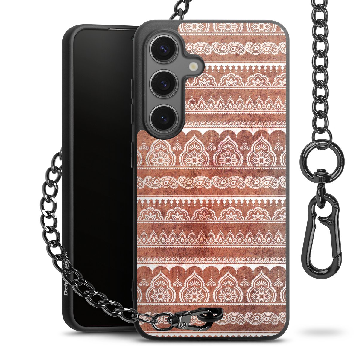 • Mattschwarze Handyhülle mit Metallkette