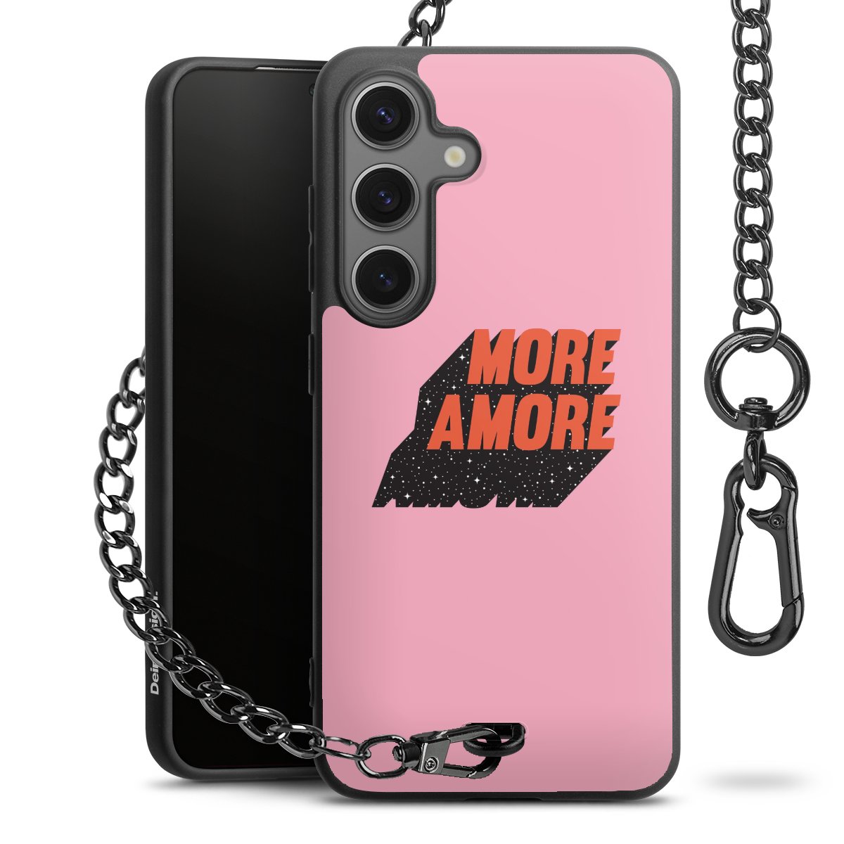 • Mattschwarze Handyhülle mit Metallkette