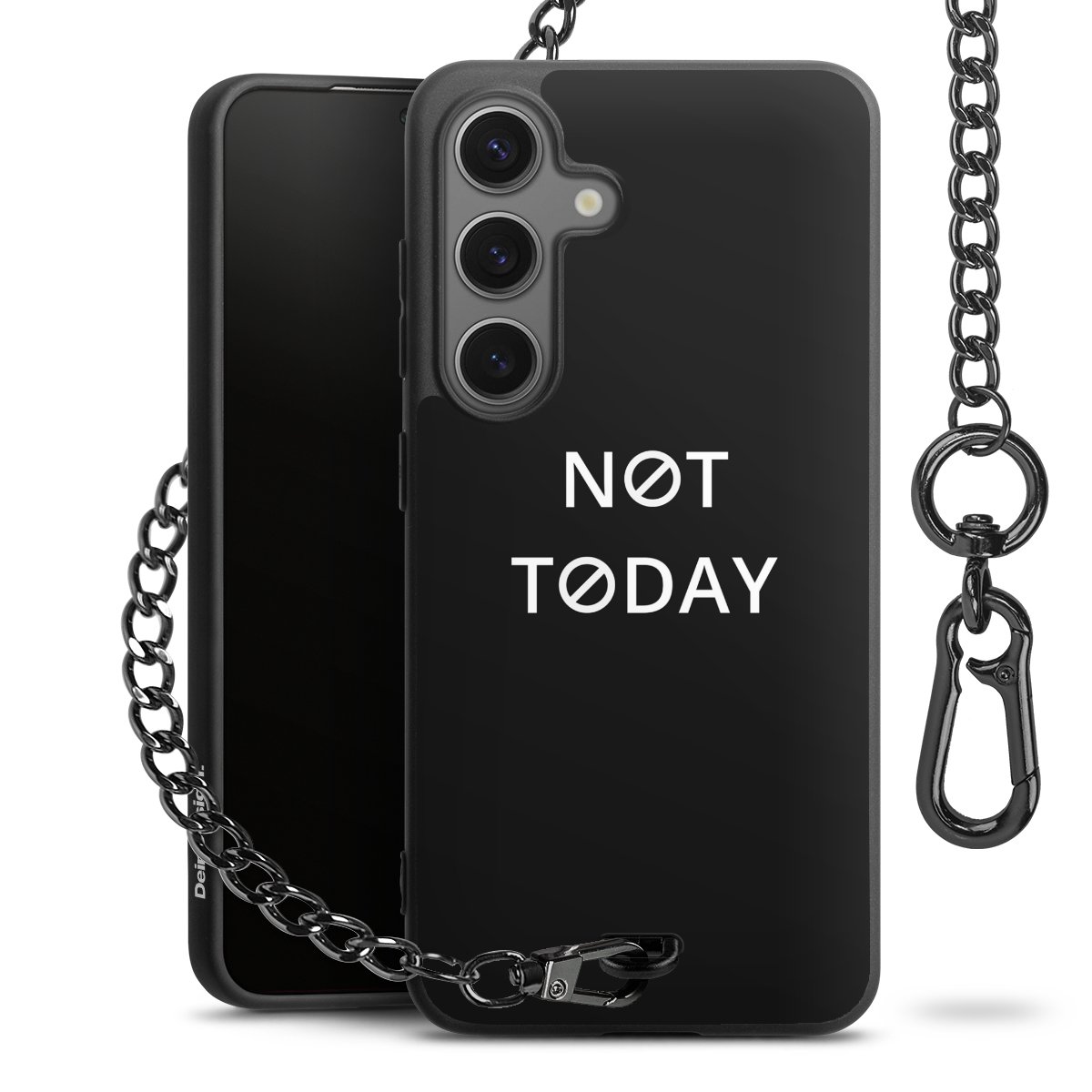- Mattschwarze Handyhülle mit Metallkette