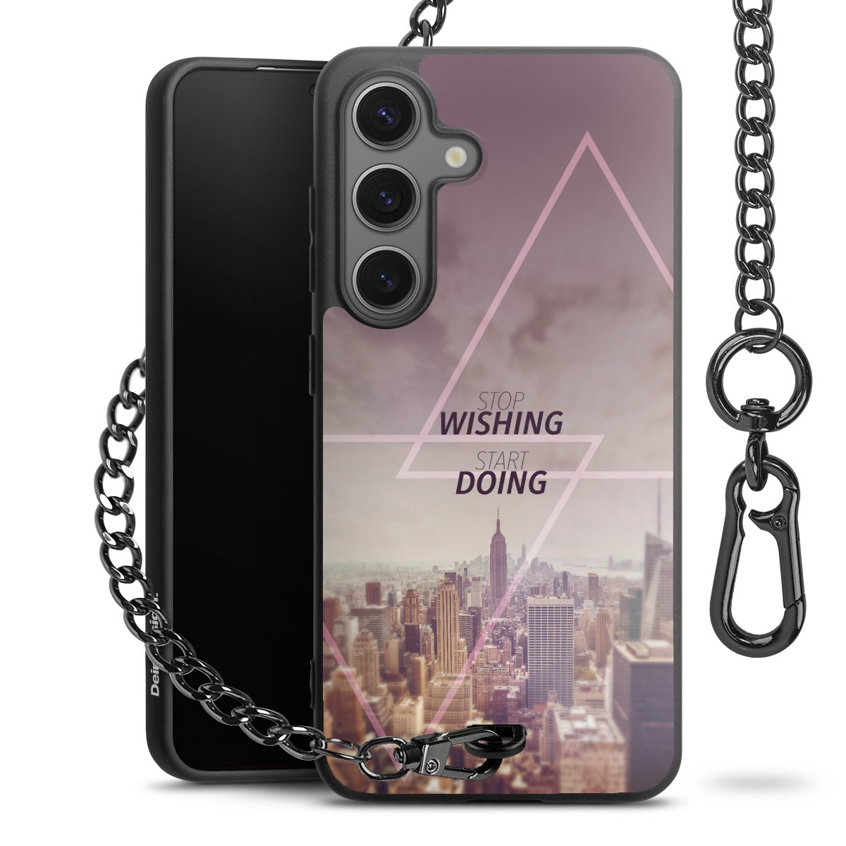 - Mattschwarze Handyhülle mit Metallkette