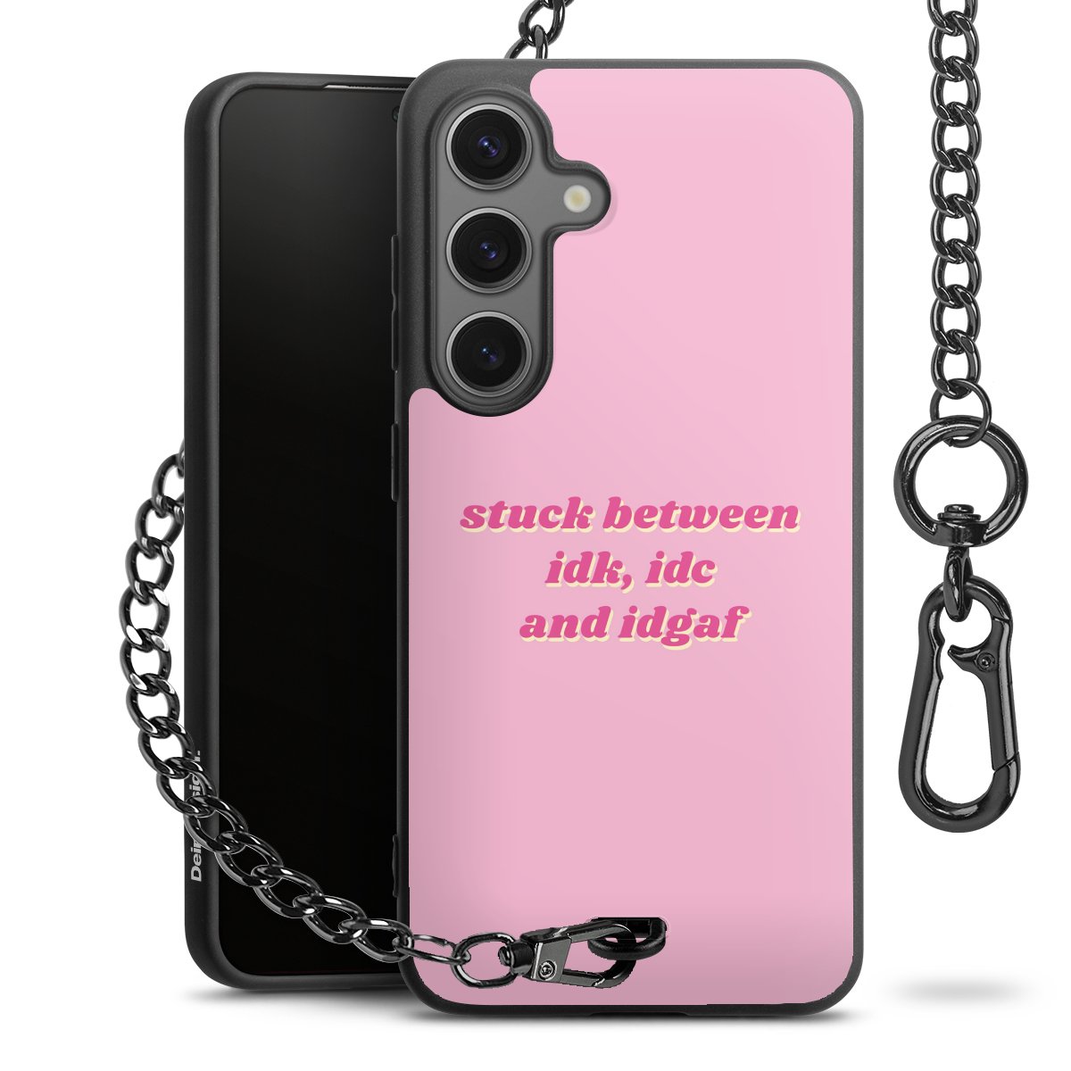 - Mattschwarze Handyhülle mit Metallkette