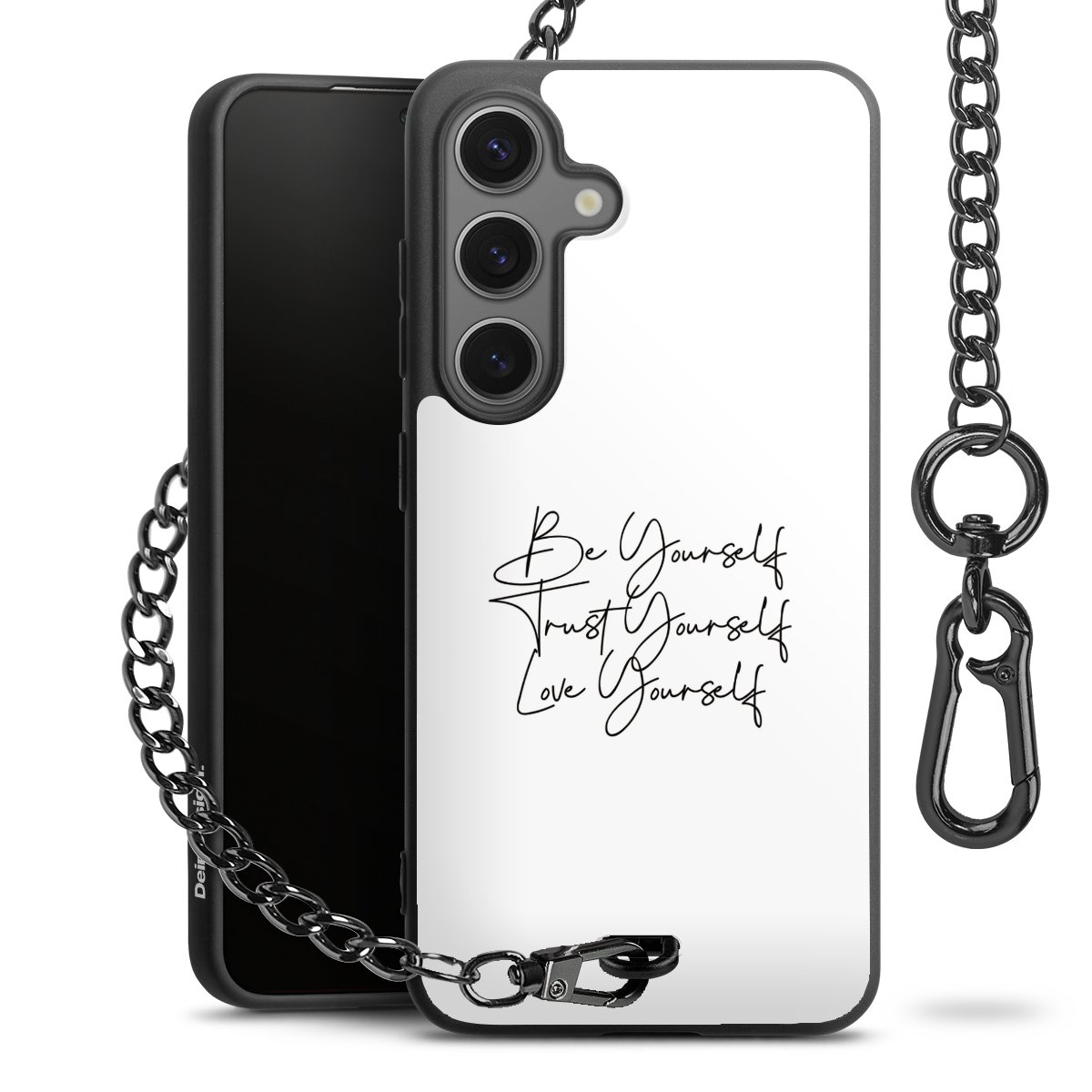 • Mattschwarze Handyhülle mit Metallkette
