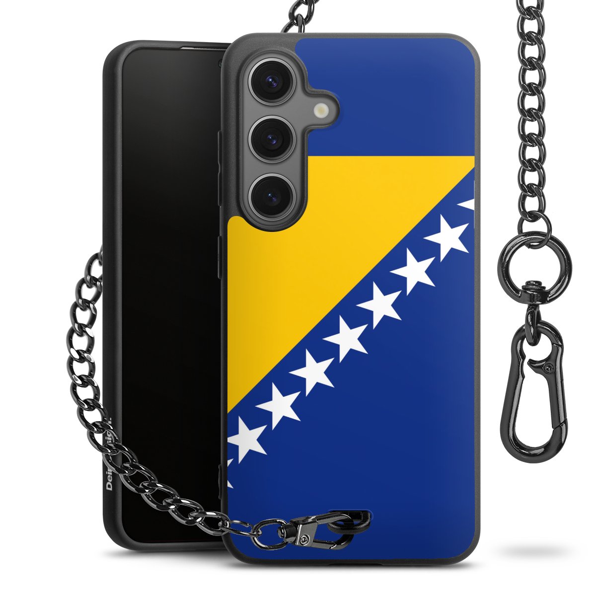 - Mattschwarze Handyhülle mit Metallkette