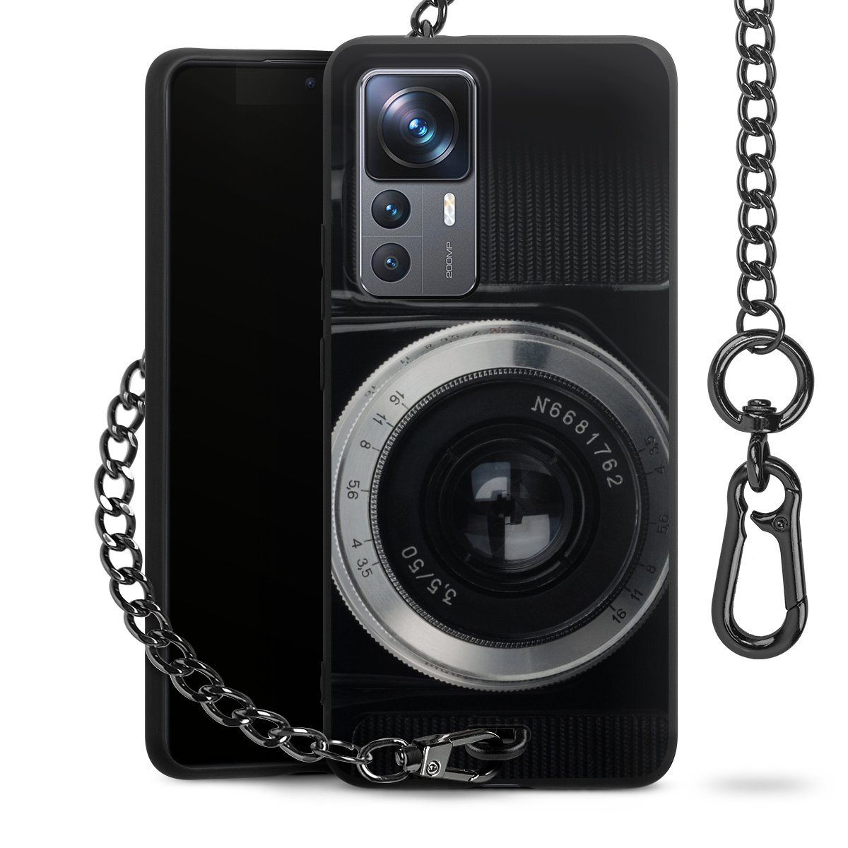 • Mattschwarze Handyhülle mit Metallkette