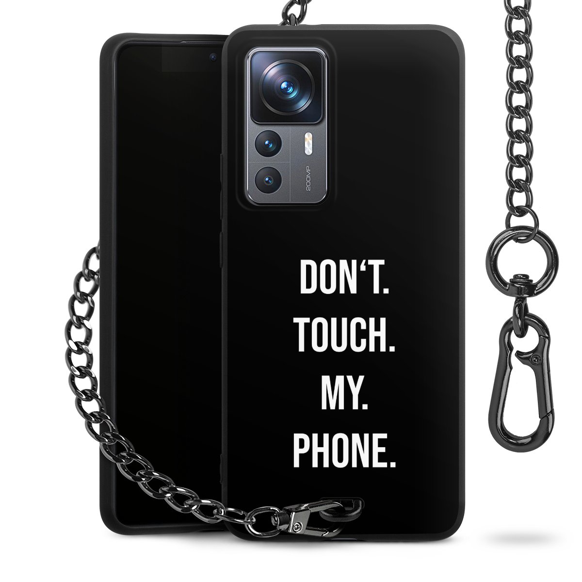 - Mattschwarze Handyhülle mit Metallkette