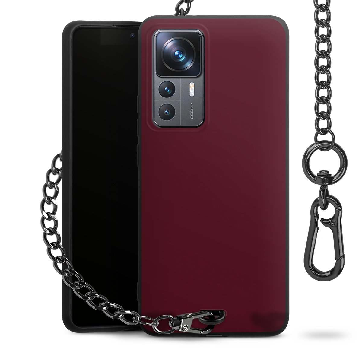 - Mattschwarze Handyhülle mit Metallkette