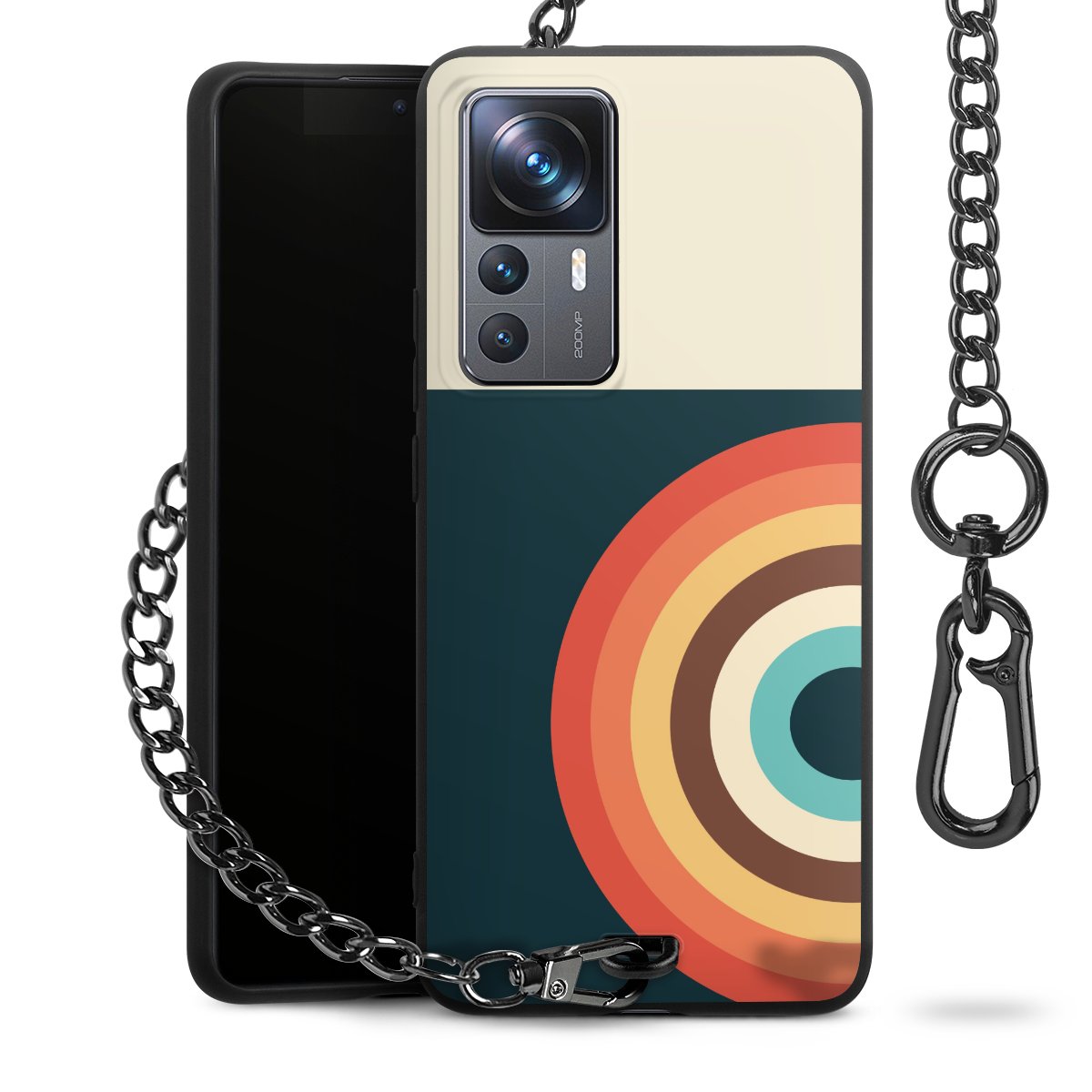- Mattschwarze Handyhülle mit Metallkette