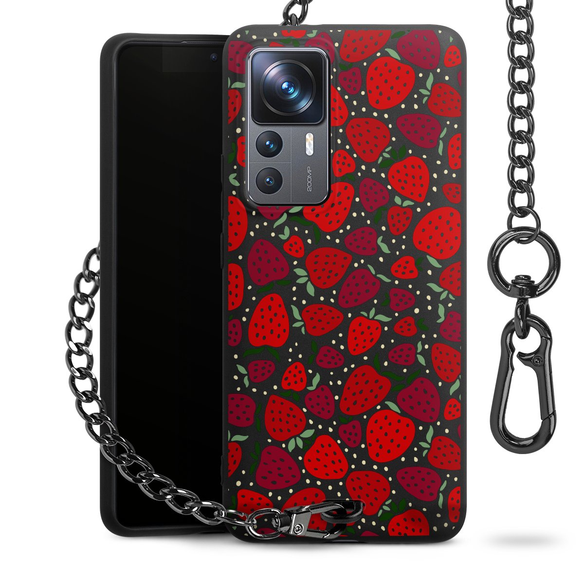 • Mattschwarze Handyhülle mit Metallkette