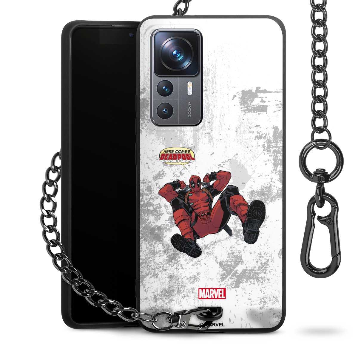 Die mattschwarze Silikon-Handyhülle besteht aus robustem TPU (thermoplastisches Polyurethan). Sie ist flexibel und schützt Dein Smartphone vor Stößen und Kratzern. Die Kette sowie der Karabinerhaken sind aus Metall in Gunmetal-Optik gefertigt. Für dieses Produkt kommen ausschließlich TÜV-geprüfte Materialien zum Einsatz.