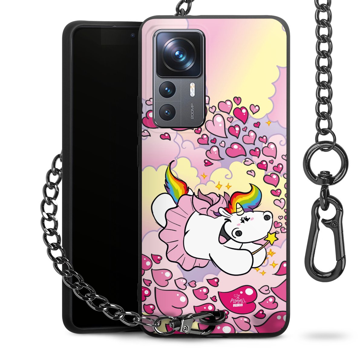 Die mattschwarze Silikon-Handyhülle besteht aus robustem TPU (thermoplastisches Polyurethan). Sie ist flexibel und schützt Dein Smartphone vor Stößen und Kratzern. Die Kette sowie der Karabinerhaken sind aus Metall in Gunmetal-Optik gefertigt. Für dieses Produkt kommen ausschließlich TÜV-geprüfte Materialien zum Einsatz.