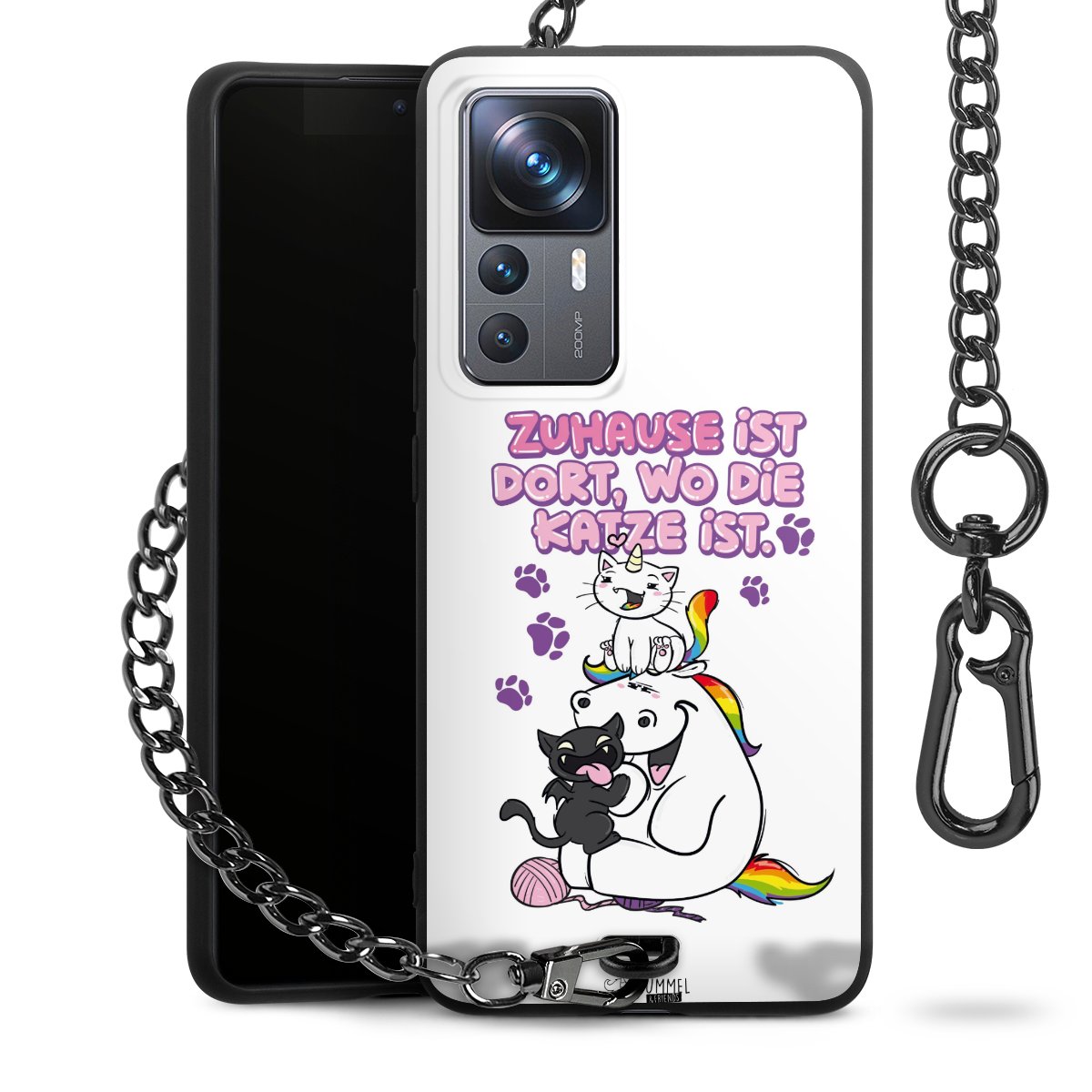 Die mattschwarze Silikon-Handyhülle besteht aus robustem TPU (thermoplastisches Polyurethan). Sie ist flexibel und schützt Dein Smartphone vor Stößen und Kratzern. Die Kette sowie der Karabinerhaken sind aus Metall in Gunmetal-Optik gefertigt. Für dieses Produkt kommen ausschließlich TÜV-geprüfte Materialien zum Einsatz.