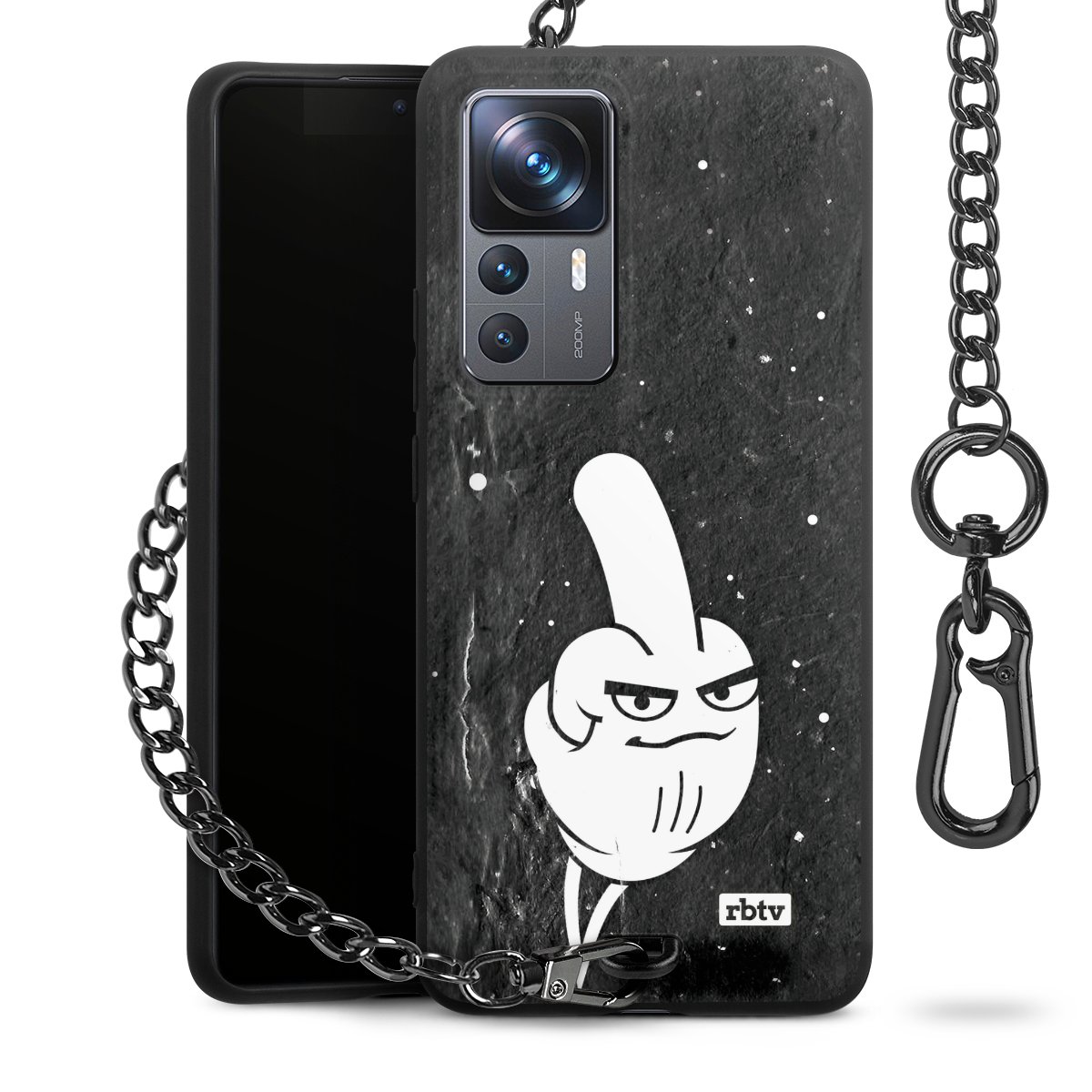 Die mattschwarze Silikon-Handyhülle besteht aus robustem TPU (thermoplastisches Polyurethan). Sie ist flexibel und schützt Dein Smartphone vor Stößen und Kratzern. Die Kette sowie der Karabinerhaken sind aus Metall in Gunmetal-Optik gefertigt. Für dieses Produkt kommen ausschließlich TÜV-geprüfte Materialien zum Einsatz.