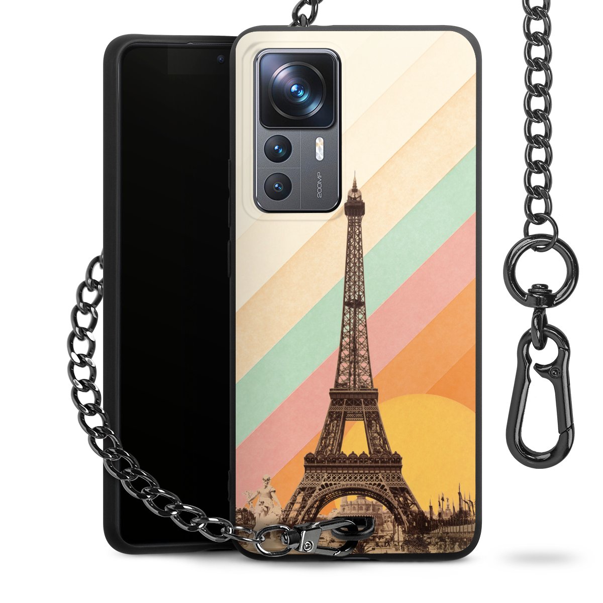 • Mattschwarze Handyhülle mit Metallkette