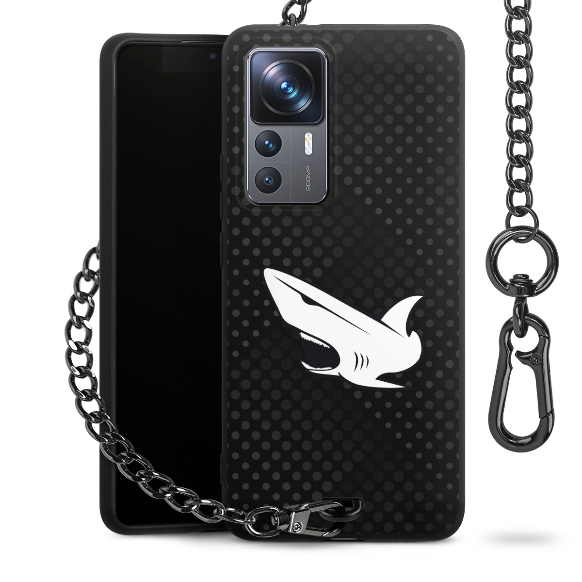 Die mattschwarze Silikon-Handyhülle besteht aus robustem TPU (thermoplastisches Polyurethan). Sie ist flexibel und schützt Dein Smartphone vor Stößen und Kratzern. Die Kette sowie der Karabinerhaken sind aus Metall in Gunmetal-Optik gefertigt. Für dieses Produkt kommen ausschließlich TÜV-geprüfte Materialien zum Einsatz.