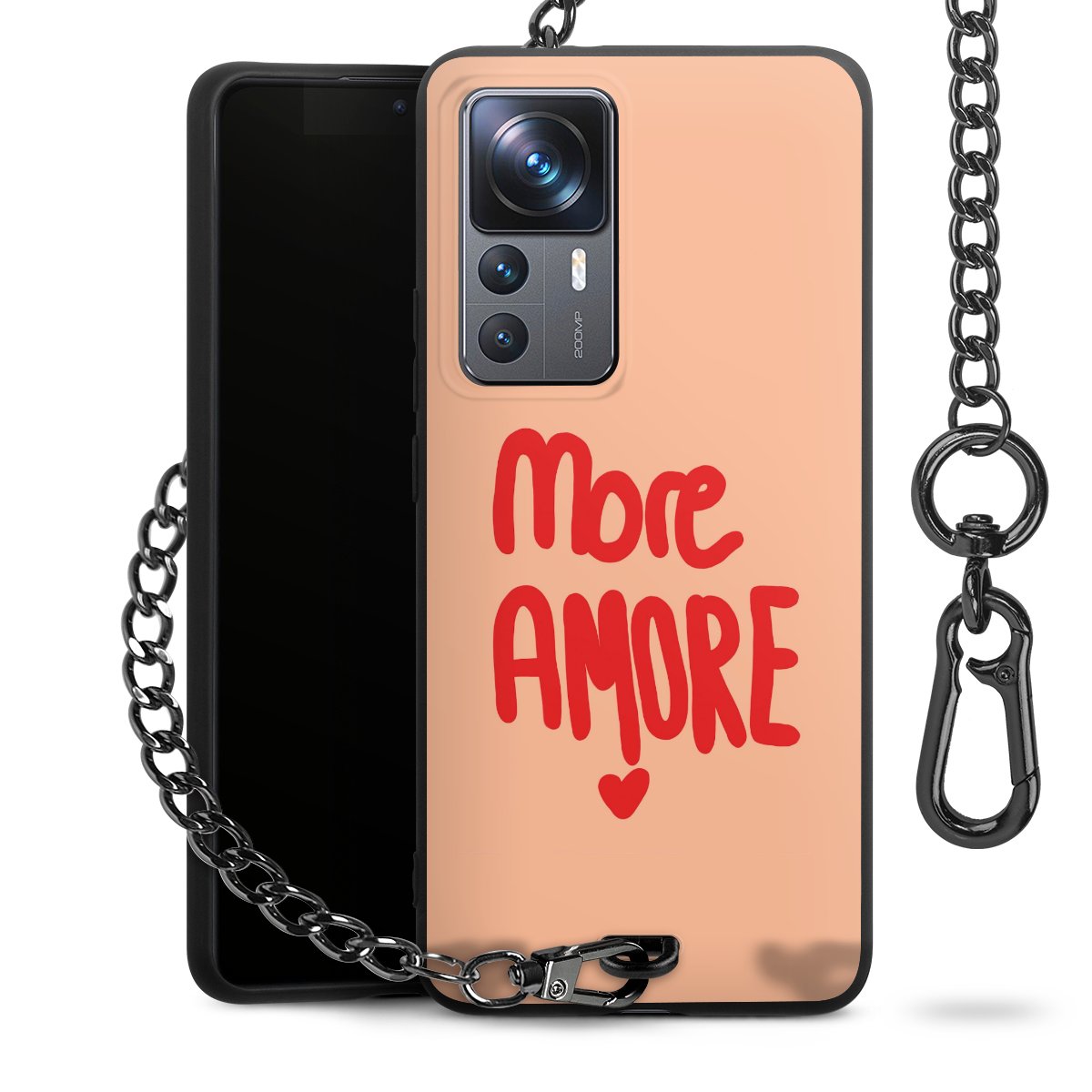 • Mattschwarze Handyhülle mit Metallkette