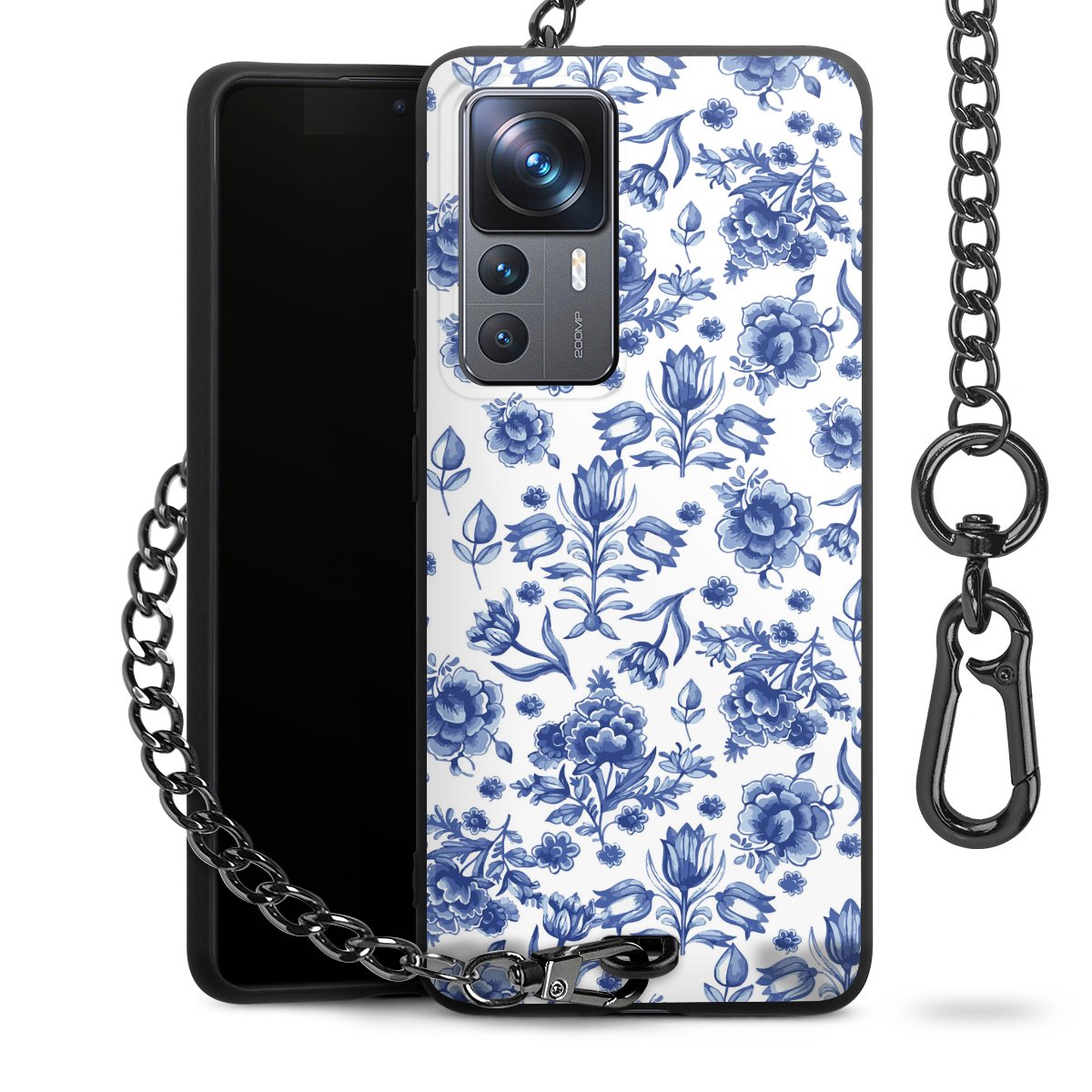 - Mattschwarze Handyhülle mit Metallkette