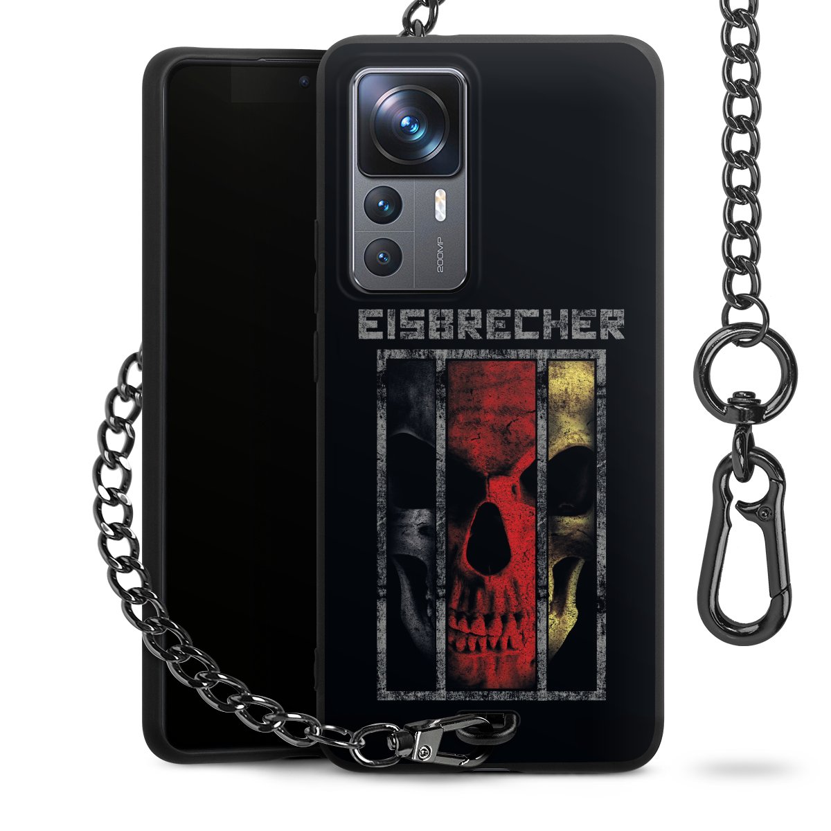 Die mattschwarze Silikon-Handyhülle besteht aus robustem TPU (thermoplastisches Polyurethan). Sie ist flexibel und schützt Dein Smartphone vor Stößen und Kratzern. Die Kette sowie der Karabinerhaken sind aus Metall in Gunmetal-Optik gefertigt. Für dieses Produkt kommen ausschließlich TÜV-geprüfte Materialien zum Einsatz.