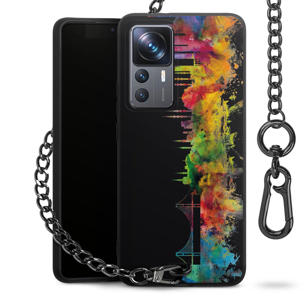 • Mattschwarze Handyhülle mit Metallkette