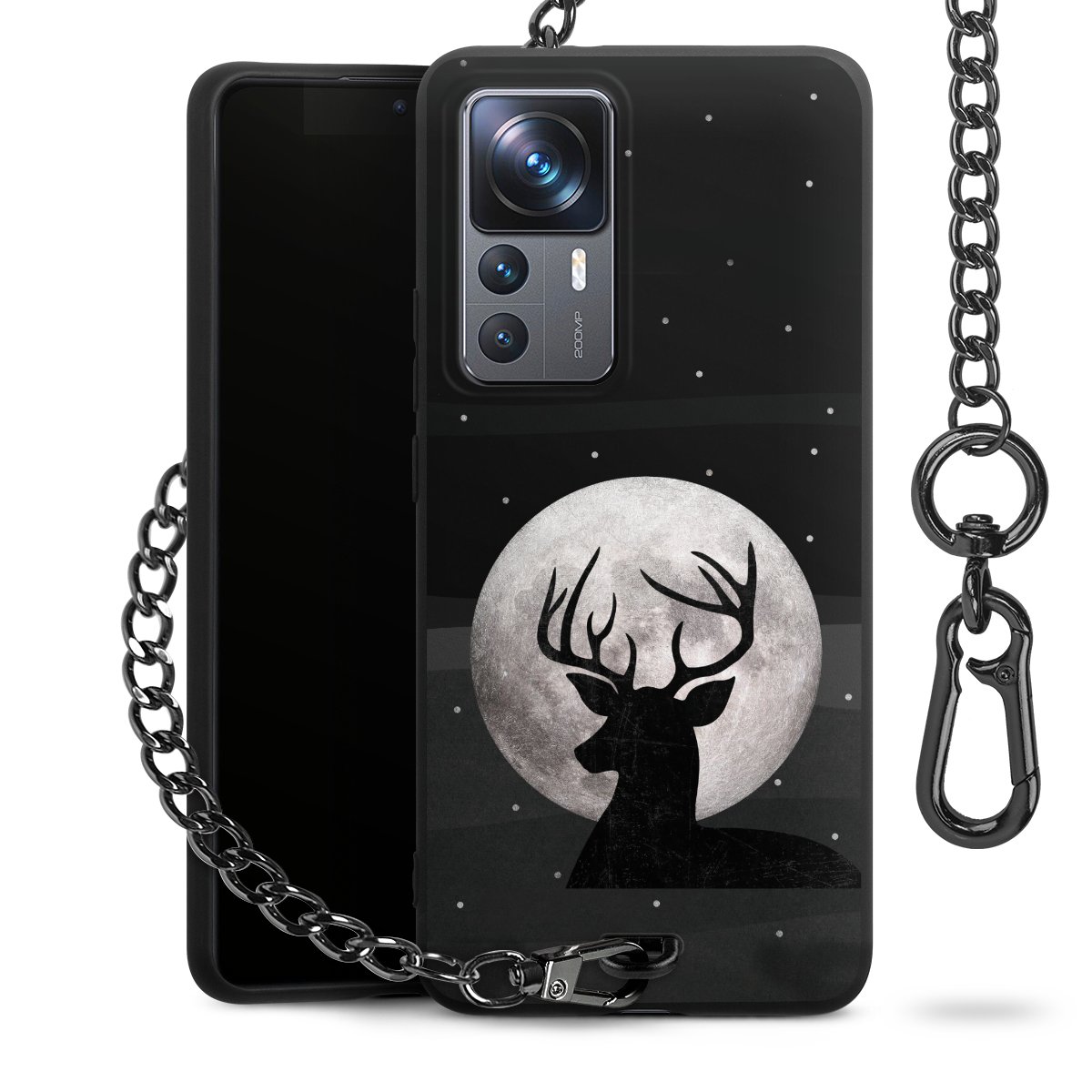 • Mattschwarze Handyhülle mit Metallkette