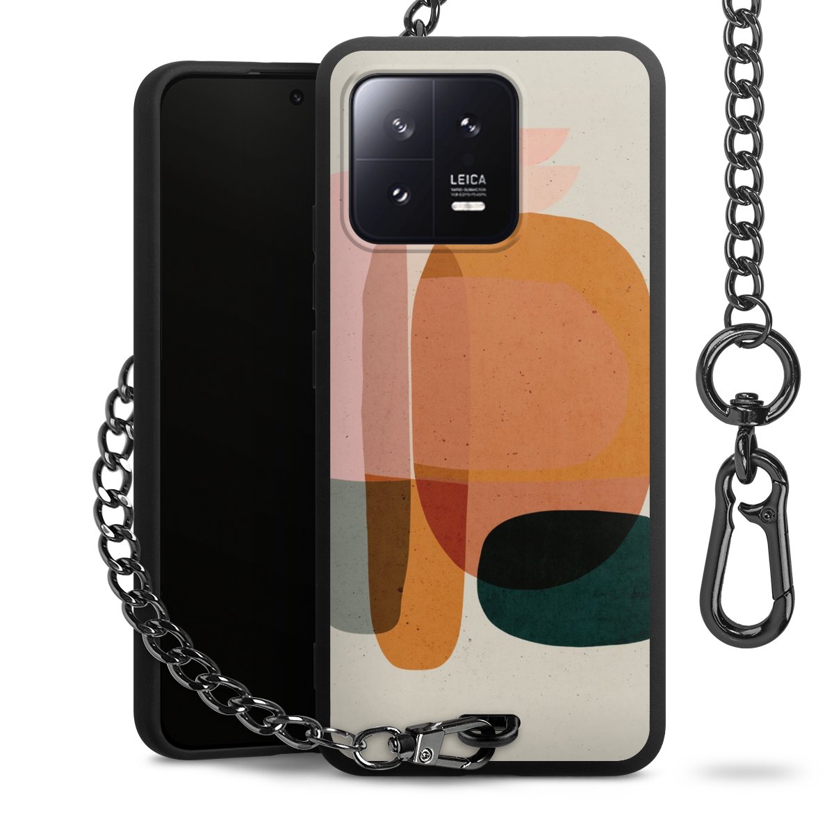 • Mattschwarze Handyhülle mit Metallkette