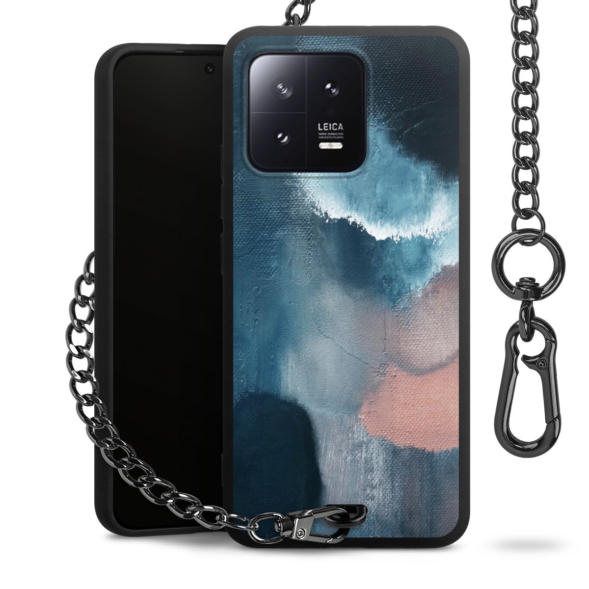 • Mattschwarze Handyhülle mit Metallkette