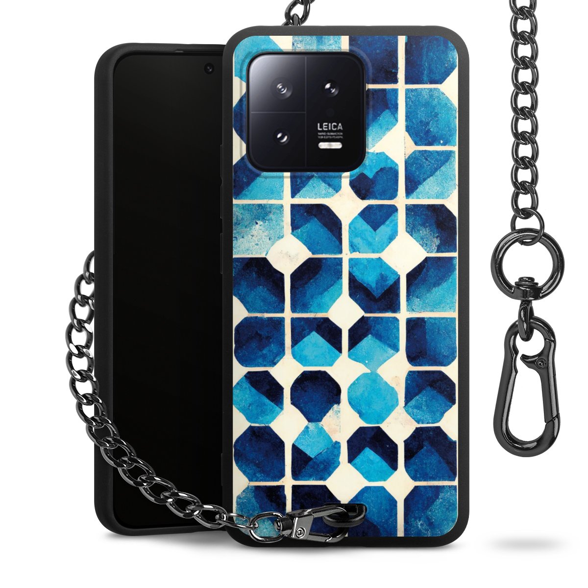 • Mattschwarze Handyhülle mit Metallkette