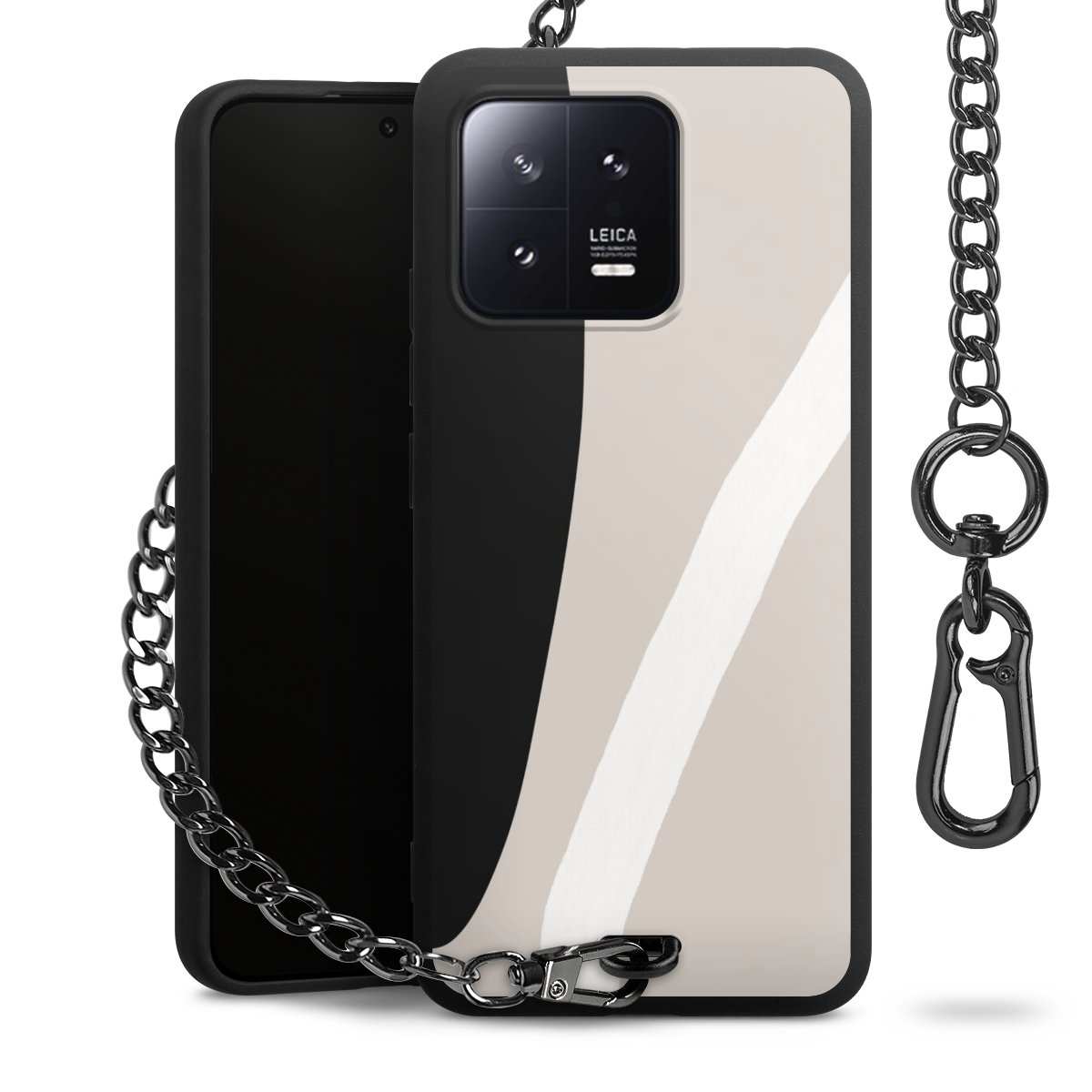 • Mattschwarze Handyhülle mit Metallkette