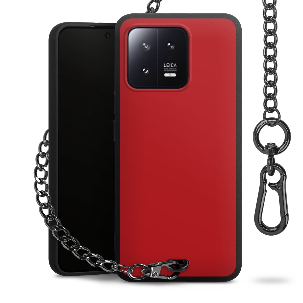 - Mattschwarze Handyhülle mit Metallkette