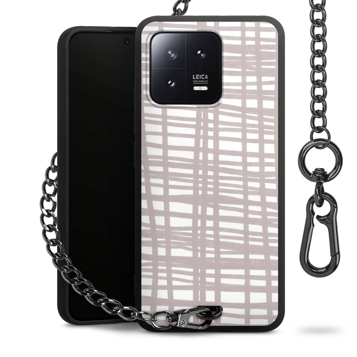 • Mattschwarze Handyhülle mit Metallkette