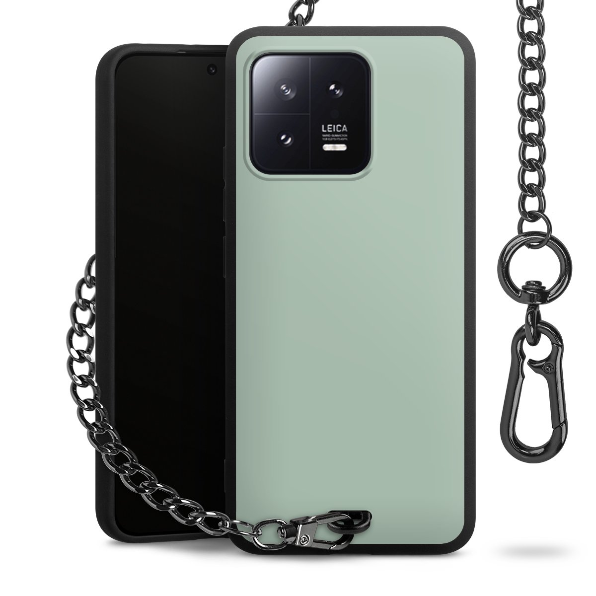- Mattschwarze Handyhülle mit Metallkette