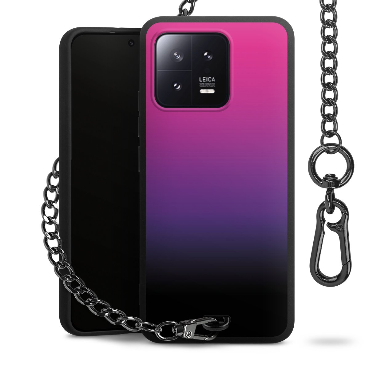 - Mattschwarze Handyhülle mit Metallkette