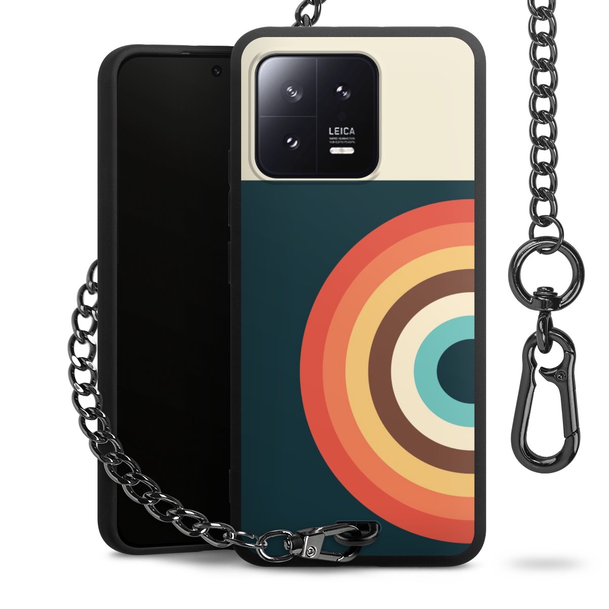 - Mattschwarze Handyhülle mit Metallkette