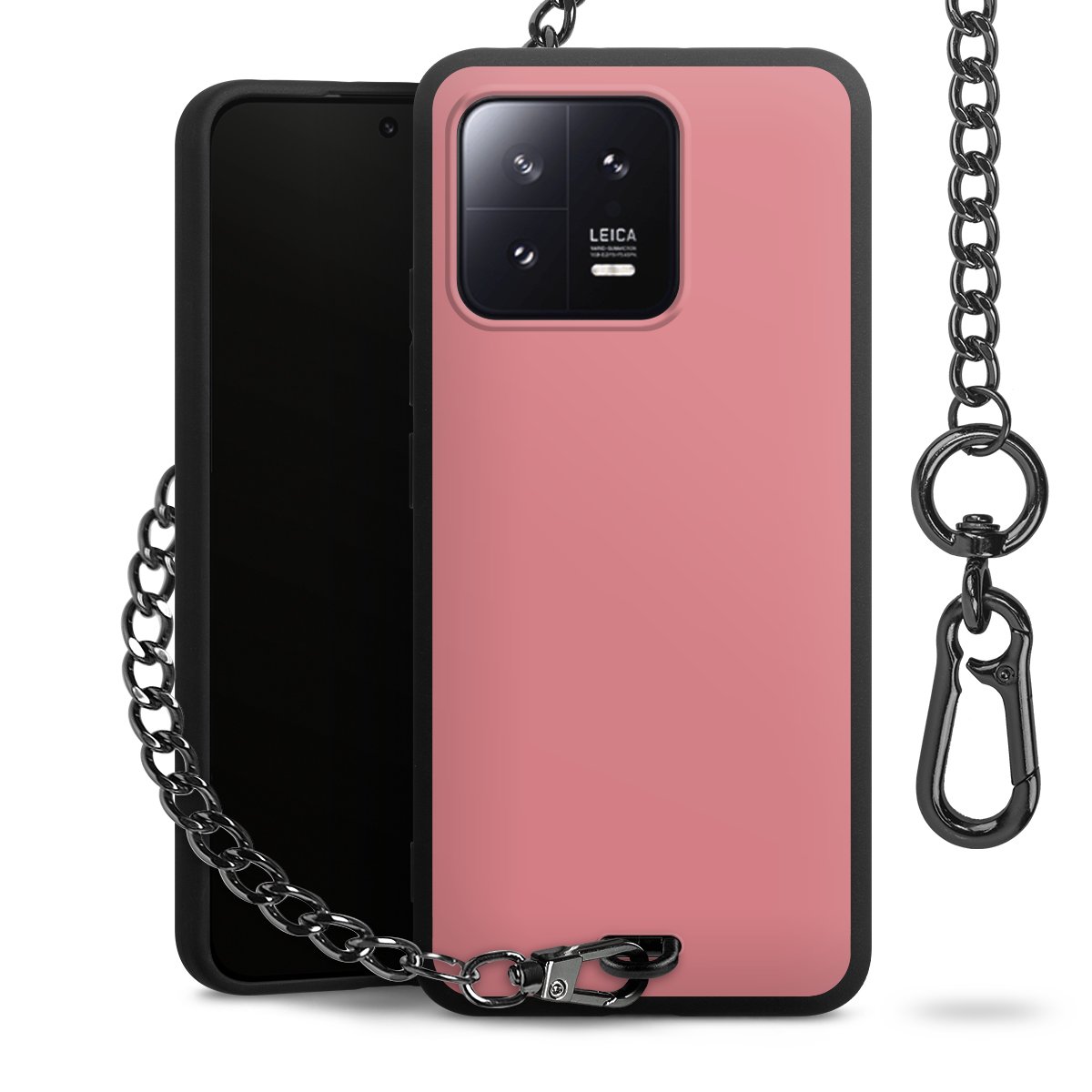 - Mattschwarze Handyhülle mit Metallkette