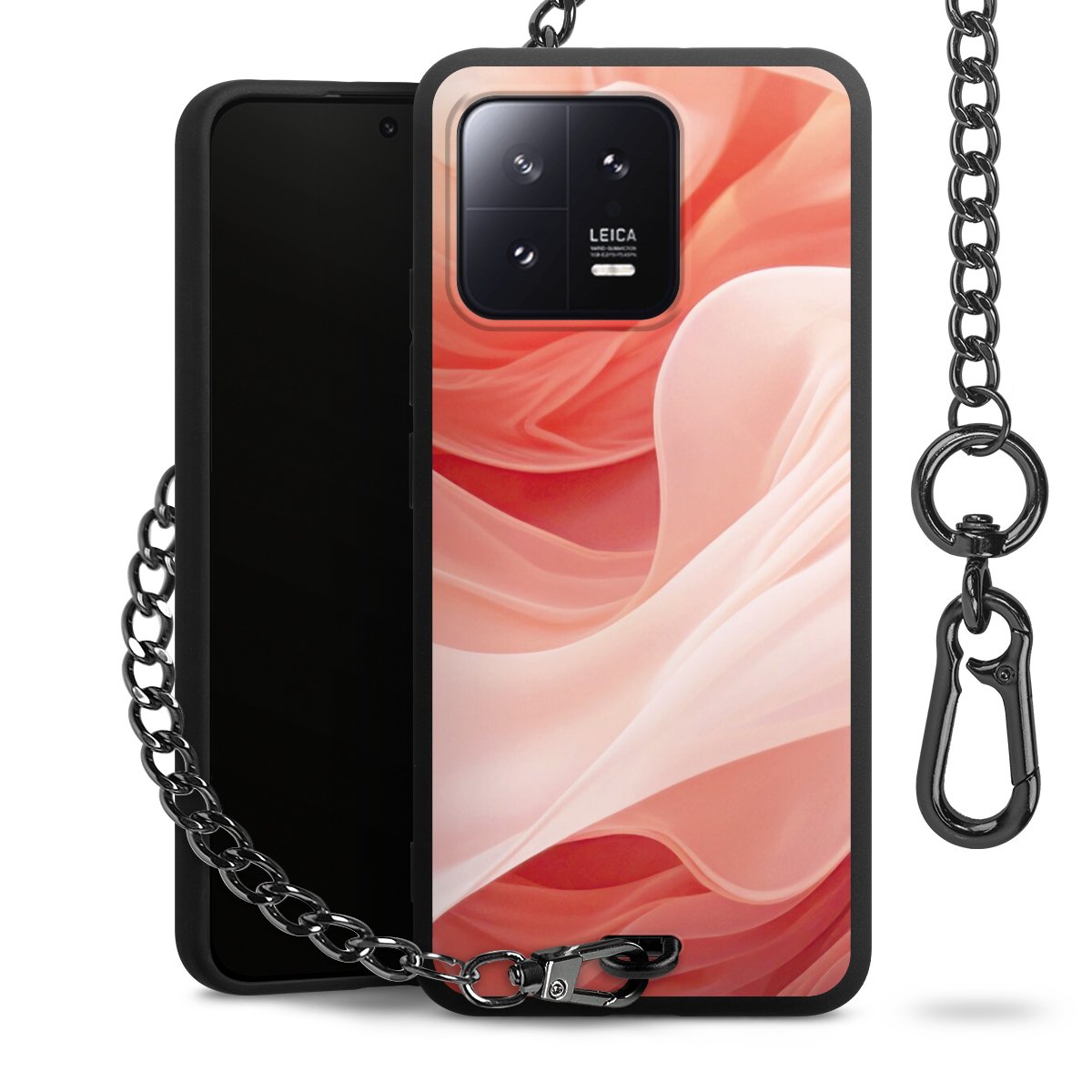 • Mattschwarze Handyhülle mit Metallkette