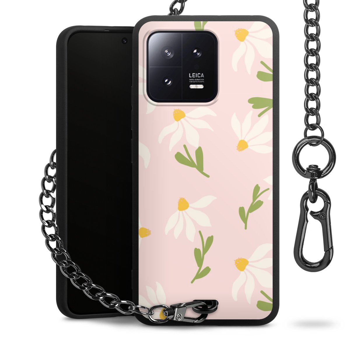 • Mattschwarze Handyhülle mit Metallkette
