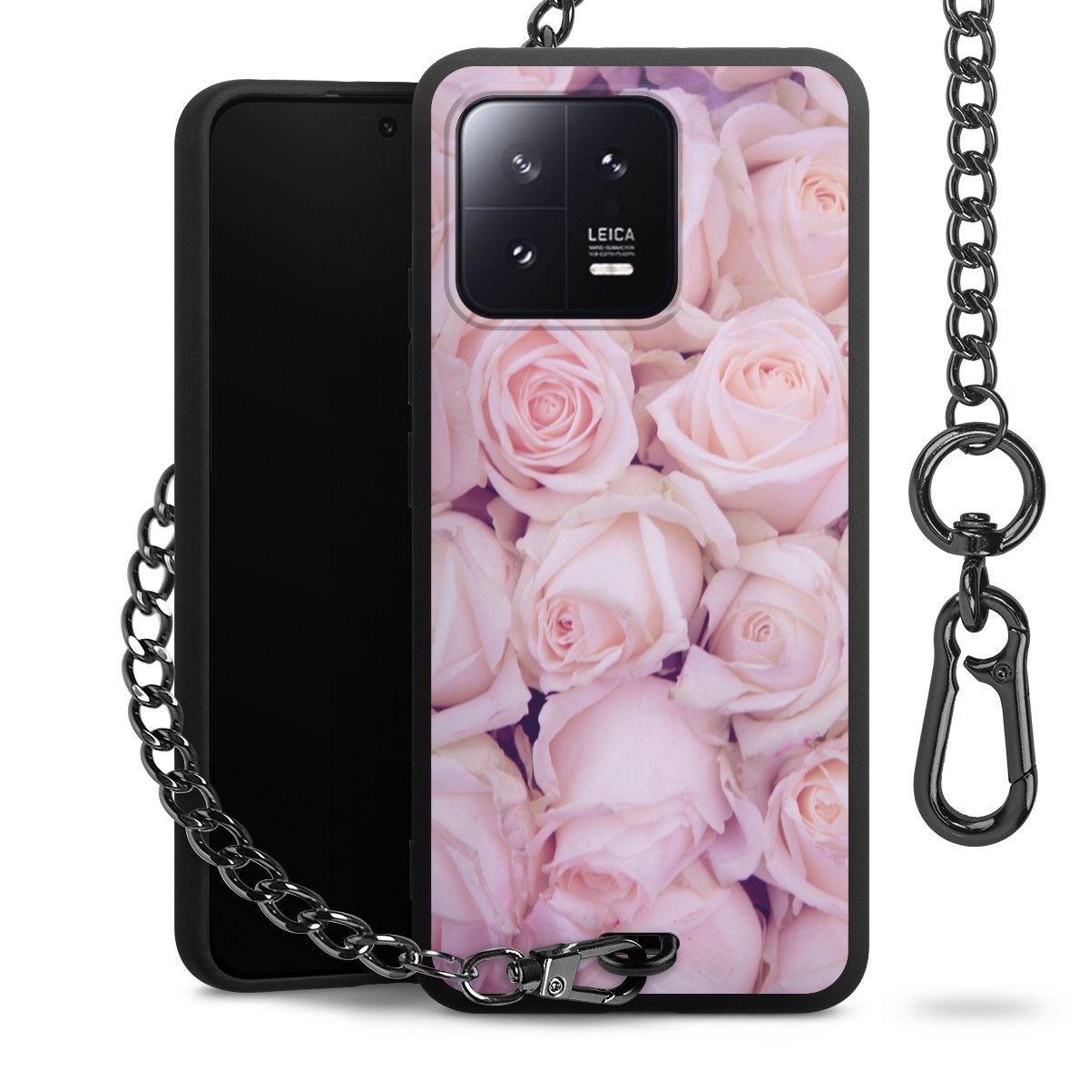 - Mattschwarze Handyhülle mit Metallkette