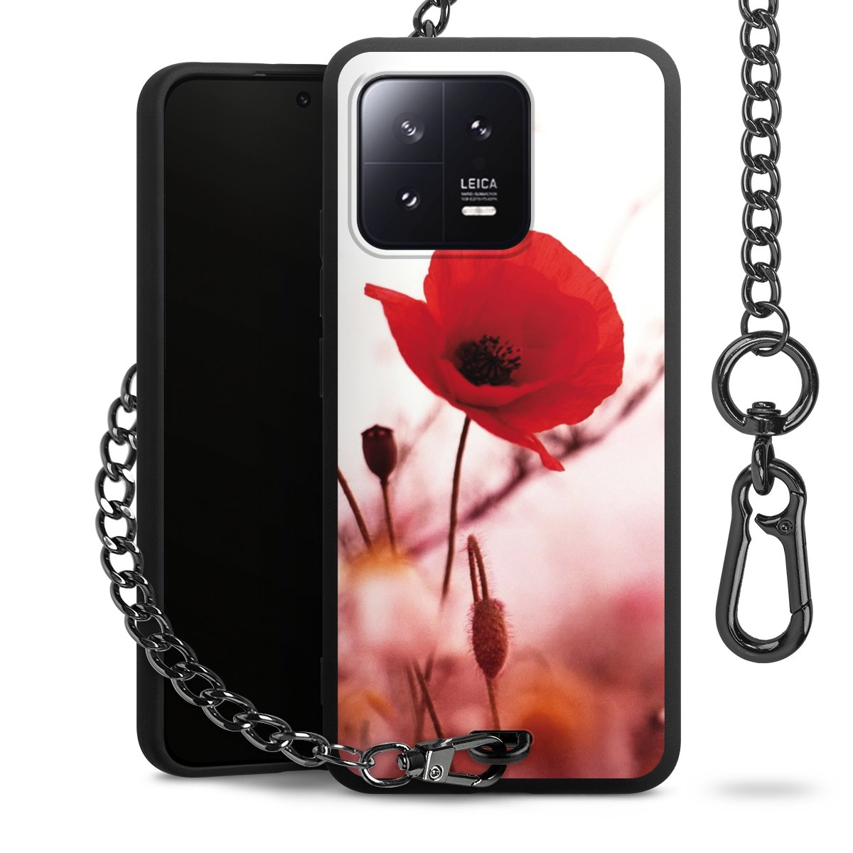 - Mattschwarze Handyhülle mit Metallkette