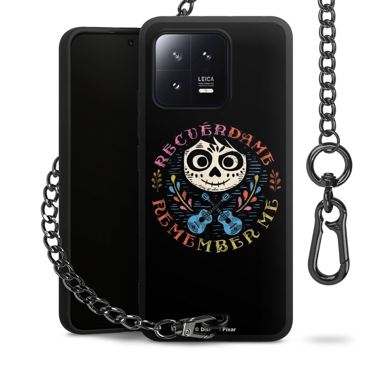 - Mattschwarze Handyhülle mit Metallkette