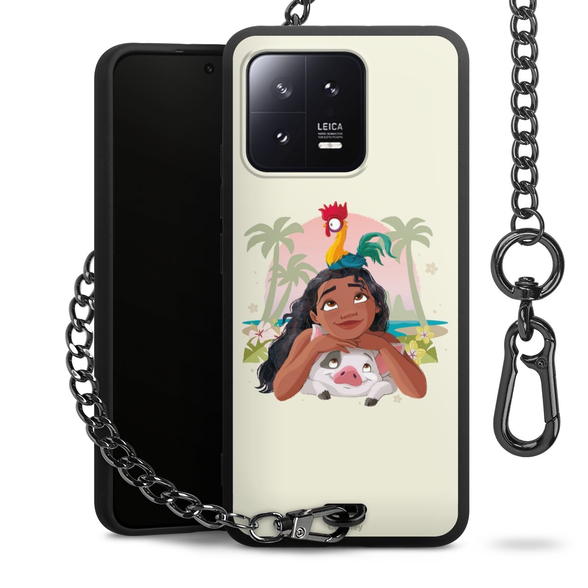 Die Handyhülle verfügt über eine mittig am unteren Rand platzierte Öse, an der die Metallkette stabil befestigt ist. Bestelle die Hülle einfach für Dein Smartphone-Modell, dann passt sie wie angegossen und Du brauchst sie bloß einmal anzudrücken. Handy in die Tasche, Karabiner an den Hosenbund – schon kann die Party starten.