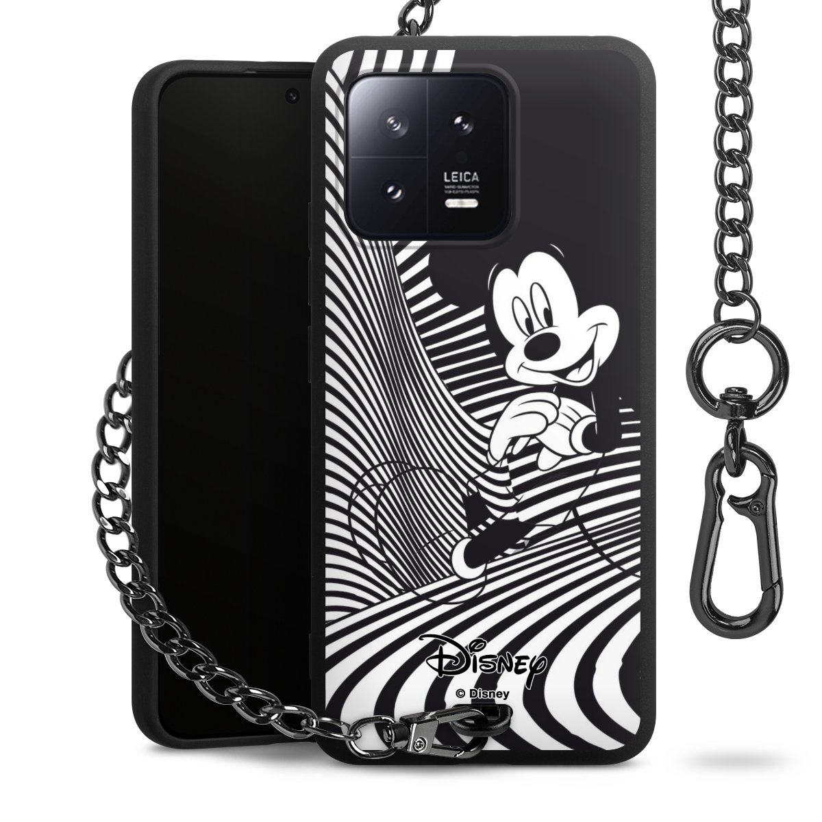 Die Handyhülle verfügt über eine mittig am unteren Rand platzierte Öse, an der die Metallkette stabil befestigt ist. Bestelle die Hülle einfach für Dein Smartphone-Modell, dann passt sie wie angegossen und Du brauchst sie bloß einmal anzudrücken. Handy in die Tasche, Karabiner an den Hosenbund – schon kann die Party starten.