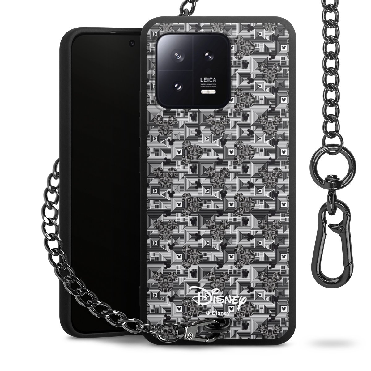 • Mattschwarze Handyhülle mit Metallkette