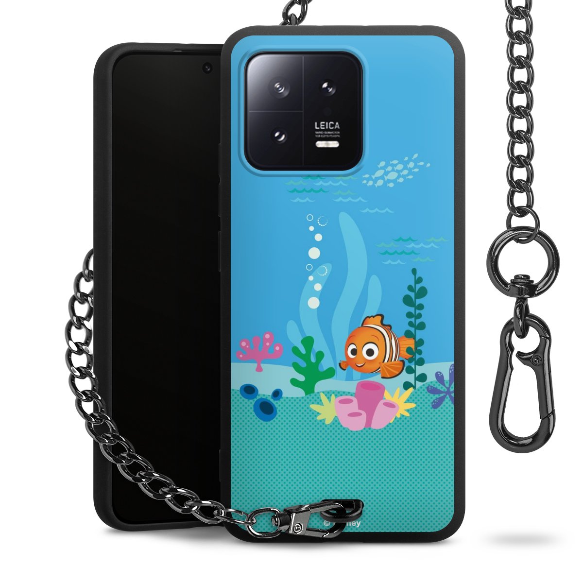 Die Handyhülle verfügt über eine mittig am unteren Rand platzierte Öse, an der die Metallkette stabil befestigt ist. Bestelle die Hülle einfach für Dein Smartphone-Modell, dann passt sie wie angegossen und Du brauchst sie bloß einmal anzudrücken. Handy in die Tasche, Karabiner an den Hosenbund – schon kann die Party starten.